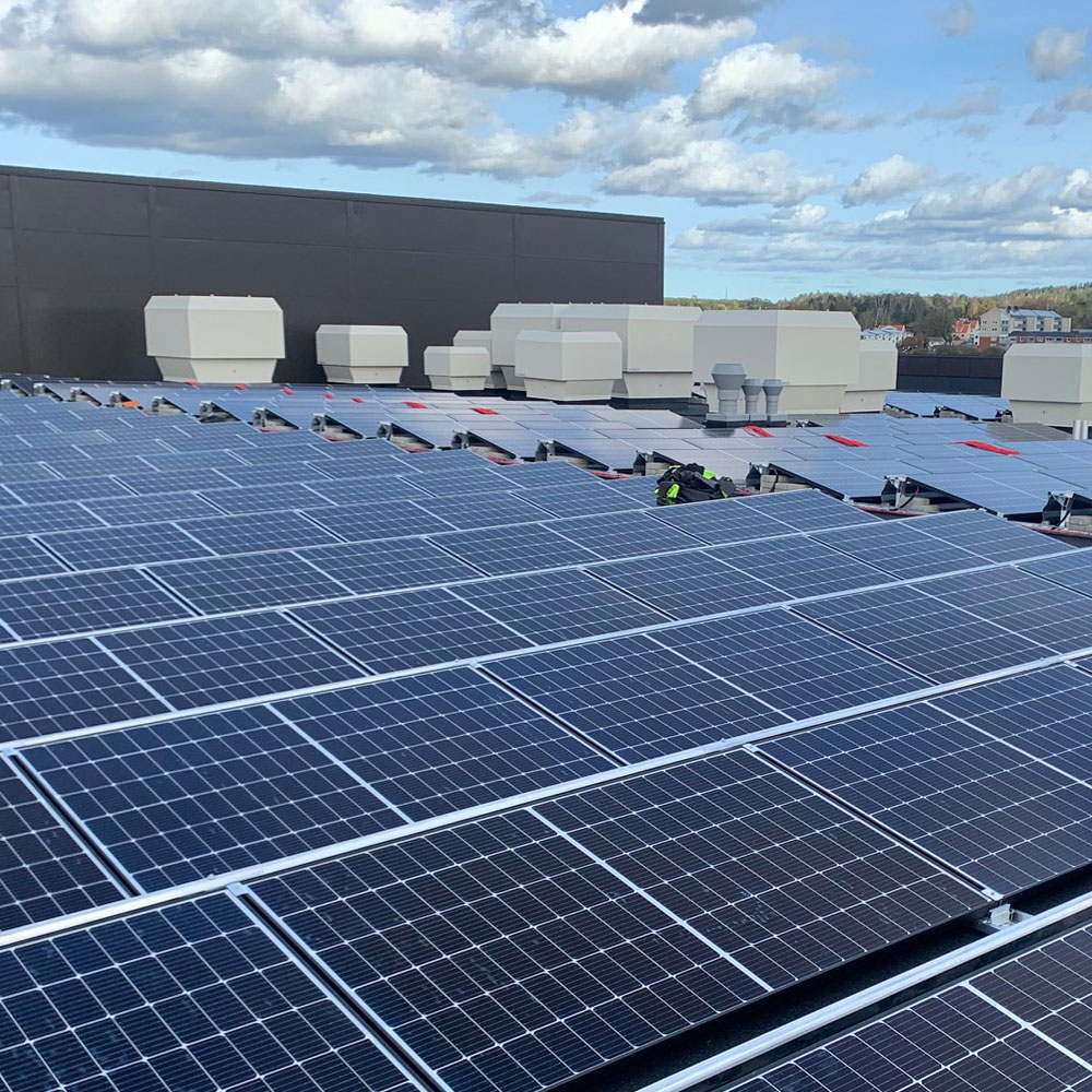 Anläggningen monterades med fristående ballastmontage på nygjort tak.